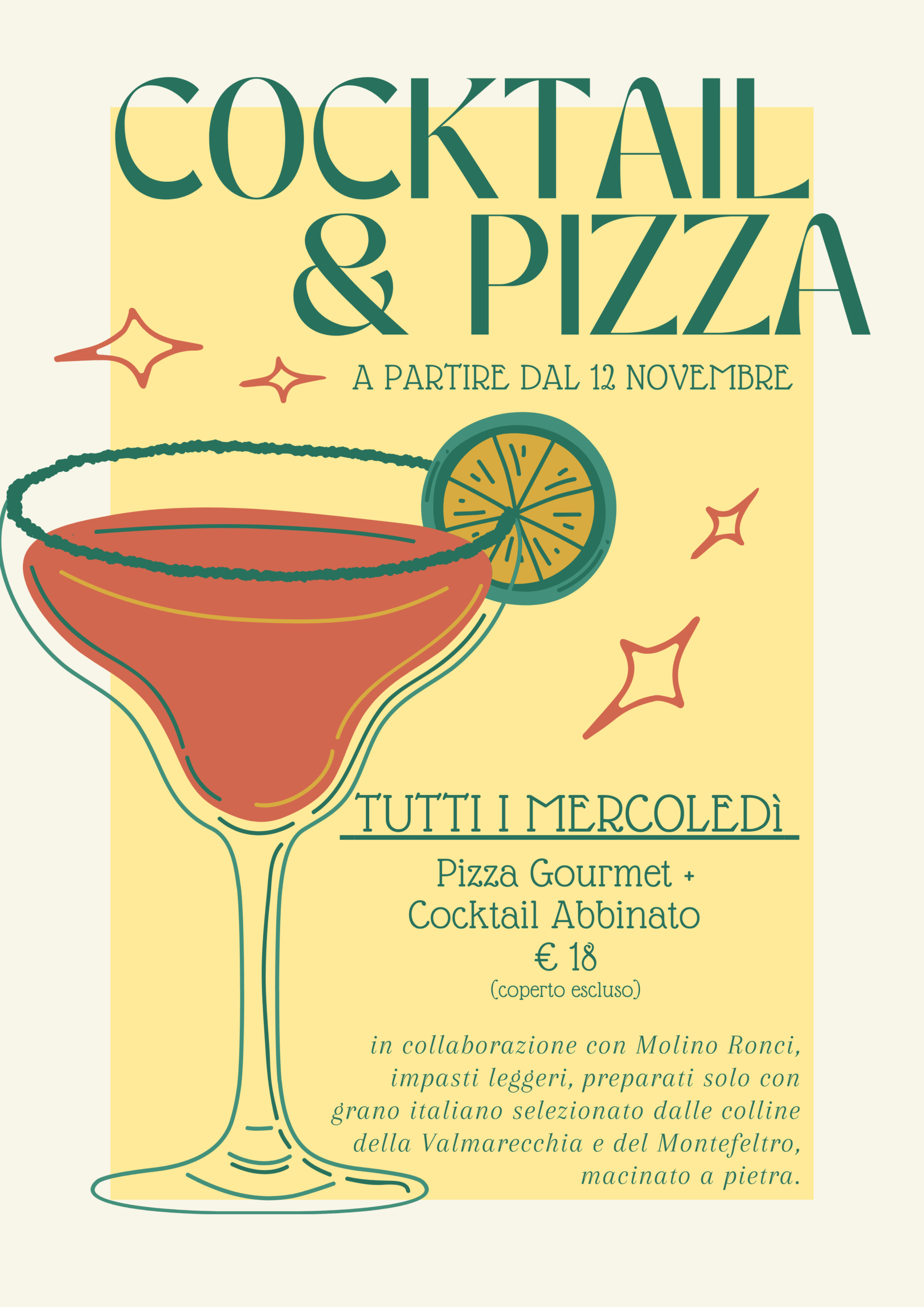 Dal 12 novembre, ogni mercoledì, ti aspetta Cocktail & Pizza: