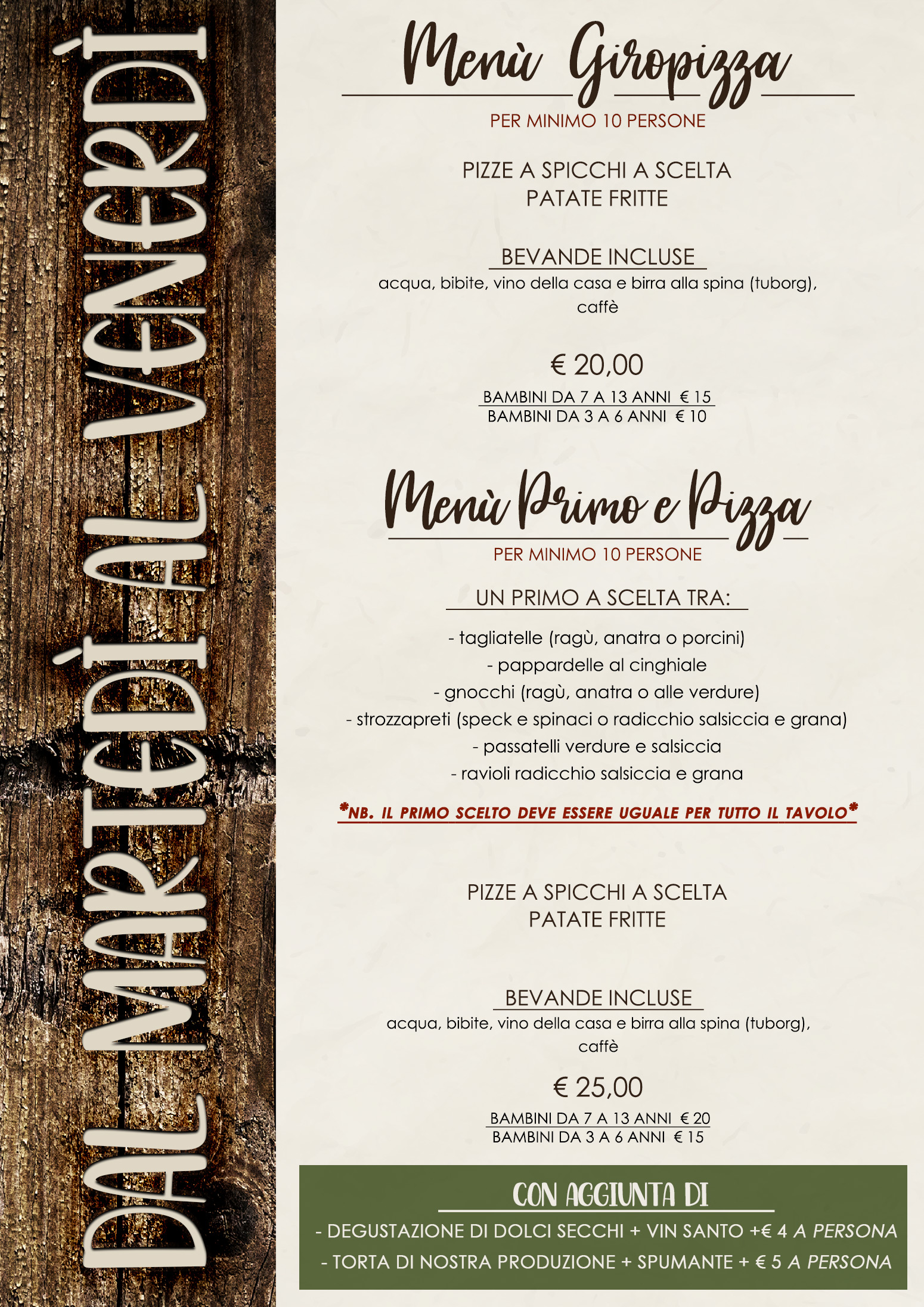 dal Martedì al Venerdì: